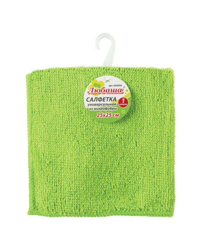 Салфетка из МИКРОФИБРЫ универсальная 25х25 см, зеленая, 180 г/м2, ЛЮБАША ЭКОНОМ,