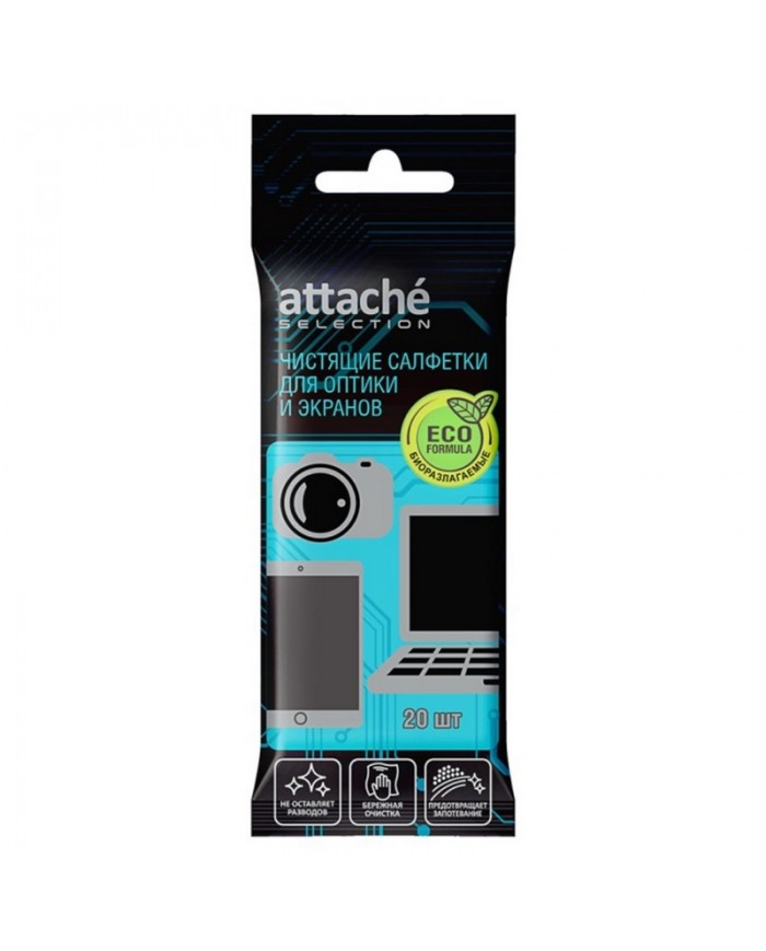 Салфетки Attache Selection д/оптики и экранов, биоразлагаемые, 20 шт