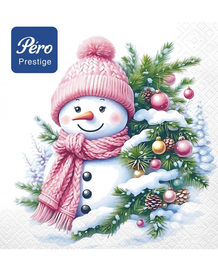 Салфетки бумажные 20 шт., 33х33 см, "Милый снеговик", 3-слойные, PERO "Prestige", 2999