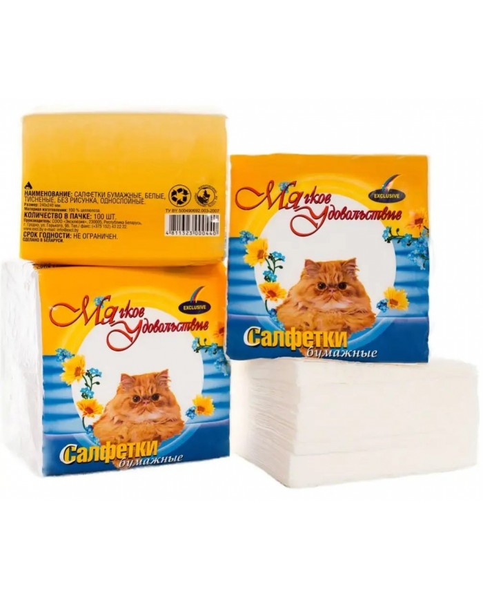 Салфетки бумажные 240х230 100шт. белые, без рисунка, тисненые, односл. Подпункт1.16 п.1. ст.118НК Р