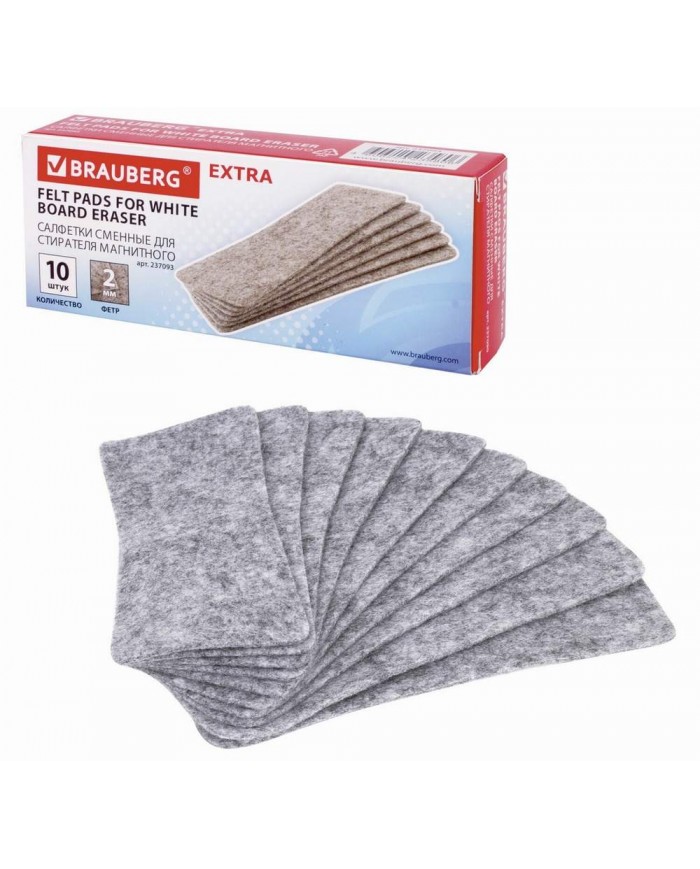 Салфетки сменные для стирателя магнитного BRAUBERG "Extra", 63х150 мм, КОМПЛЕКТ 10 шт.