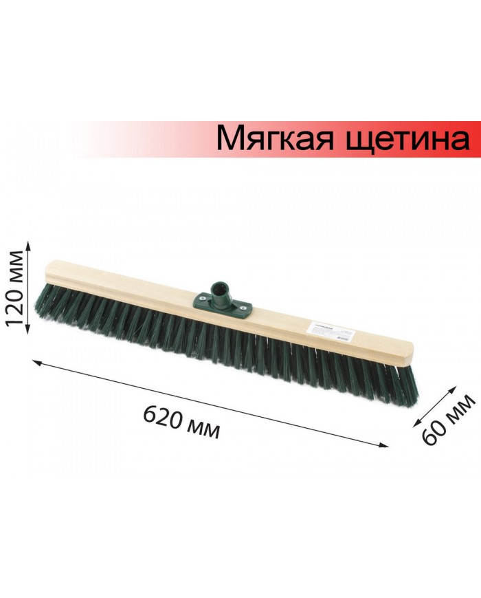 Колодка щетки производится из дерева. Мягкая щетина выполнена из полипропилена. Длина щетины: 7 см, ширина щетки: 60 см. Совместима с черенком с еврорезьбой. Преимущества технической щетки для уборки: - практичность: особенности конструкции щетки позволяют использовать ее для любых типов напольных покрытий помещения; - функциональность и безопасность использования; - прочность и долговечность, которые обеспечиваются простотой конструкции.