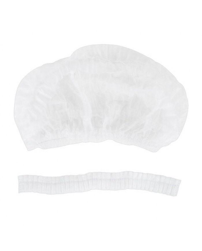 Шапочка "Шарлотта" белая двойная резинка, КОМПЛЕКТ 100 шт., спанбонд 10 г/м2, ОПТИТРЕЙД