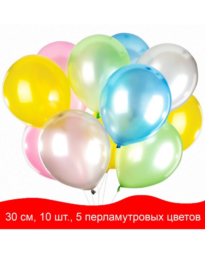 Шары воздушные ЗОЛОТАЯ СКАЗКА, 12" (30 см), КОМПЛЕКТ 10 штук, перламутровые, ассорти 5 цветов, пакет