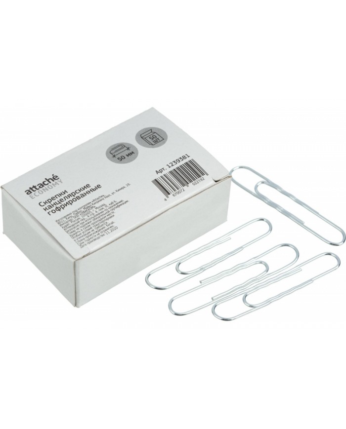 Скрепки Attache Economy незаменимы при работе в офисе или дома, когда нужно соединить несколько бумаг, например, все листы договора или другие важные документы. Канцелярские скрепки изготовлены из стали, не имеют покрытия, гофрированные. Форма скрепок - овальная. Они надежно скрепляют документы, не повреждая их. Скрепки имеют размер 50 мм. Упакованы по 50 скрепок в картонную упаковку.