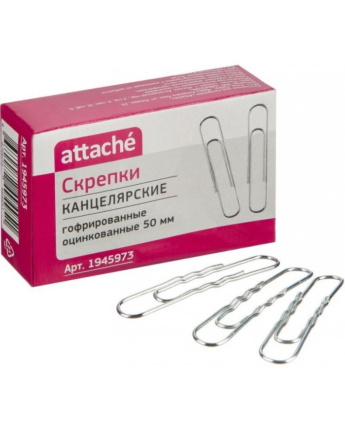 Скрепки Attache незаменимы при работе в офисе или дома, когда нужно соединить несколько бумаг, например, все листы договора или другого документа. Надежно скрепляют документы, не повреждая бумагу. Металлические оцинкованные без покрытия гофрированные. Имеют удобную закругленную форму. Скрепки вложены в картонную коробочку, 50 штук. Размер - 50 мм.