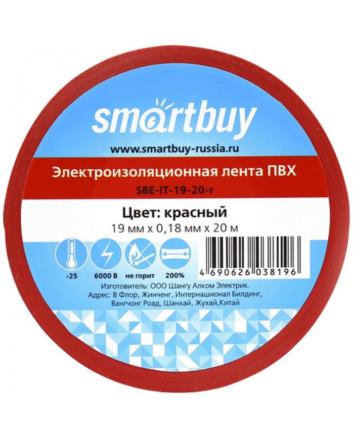 Изолента Smartbuy, 19мм*20м, 180мкм, красная, инд. упаковка