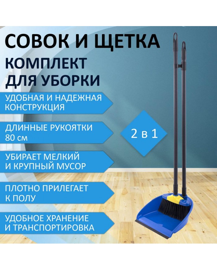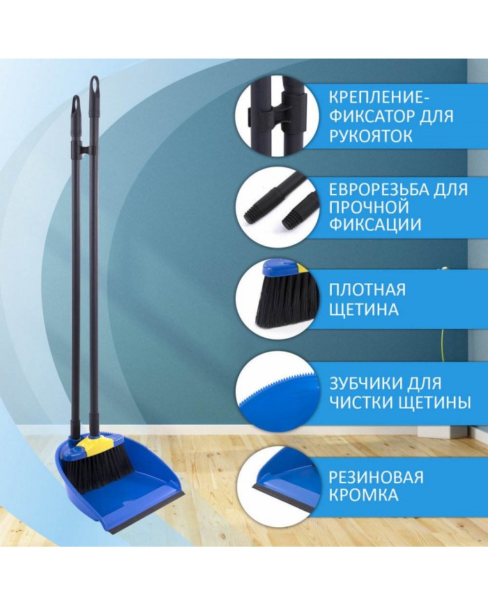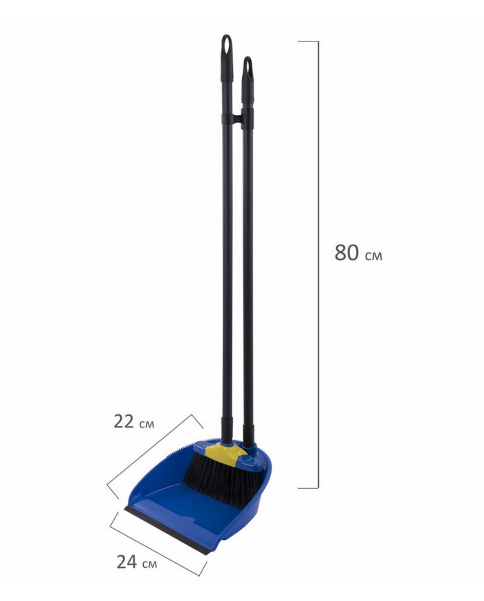 Совок со щеткой для уборки "ЛЕНИВКА XL" 24х22 см (зубчики для чистки щетины), щетка 16х8 см, рукоятк