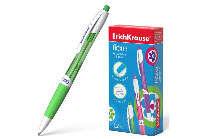 Шариковая ручка с зелеными чернилами. Толщина линии - 0,5 мм. Корпус ручки - прозрачный пластик...