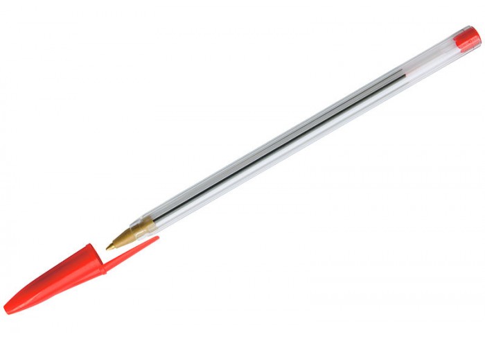 Шариковая ручка с красными чернилами. Толщина линии - 0,5 мм. Корпус ручки - прозрачный пластик...