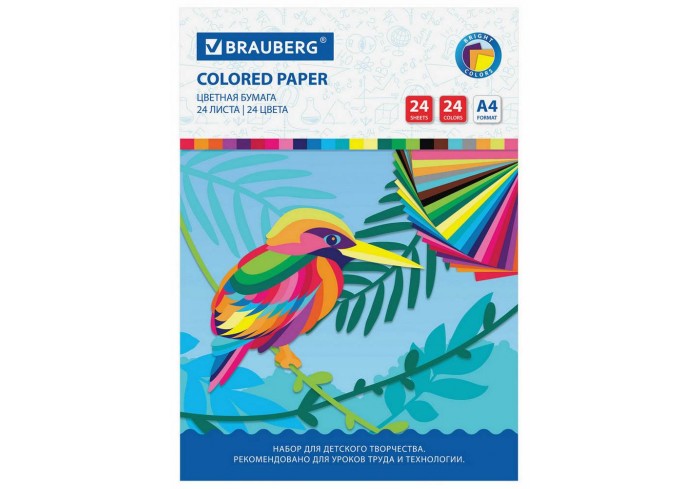Набор офсетной односторонней цветной бумаги улучшенной прокраски плотностью 60 г/м2 включает 24 листа формата А4 (200х280 мм) в 24-х разнообразных и н..