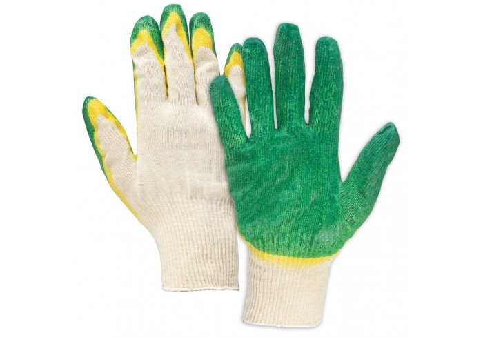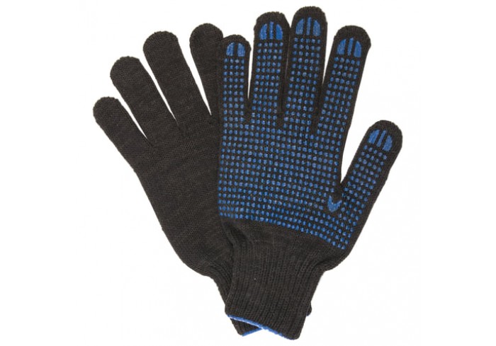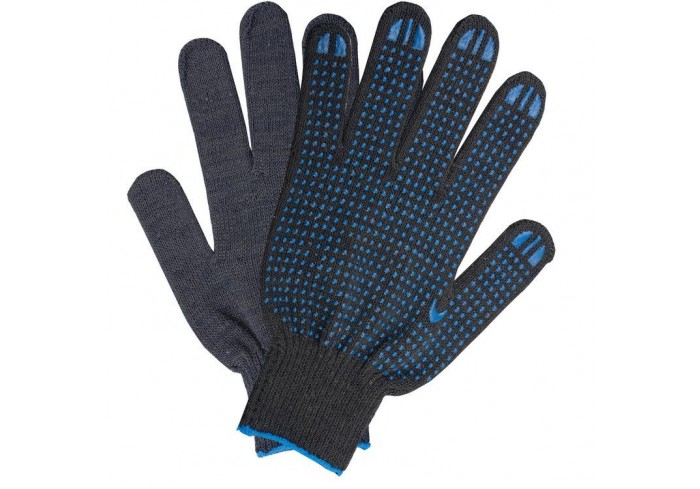 Изготовлены из хлопчатобумажной пряжи плотностью 100 текс с покрытием из поливинилхлорида с нанесением рисунка на внутреннюю сторону перчатки. Двойной..