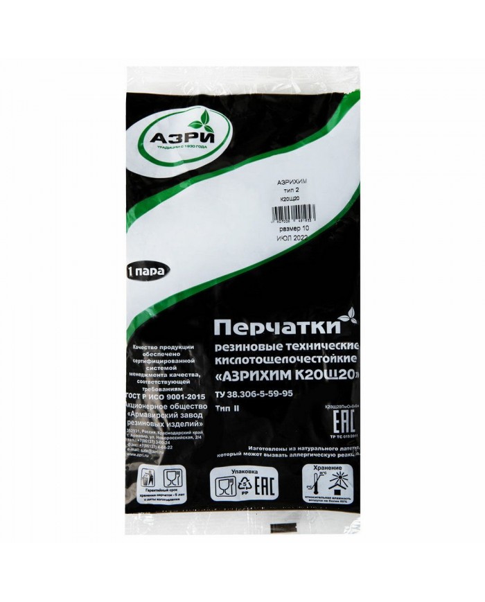 Перчатки для защиты от химических факторов (растворов кислот и щелочей концентрацией до 50%, сырой нефти, нефтяных масел и продуктов тяжёлых фракций)...