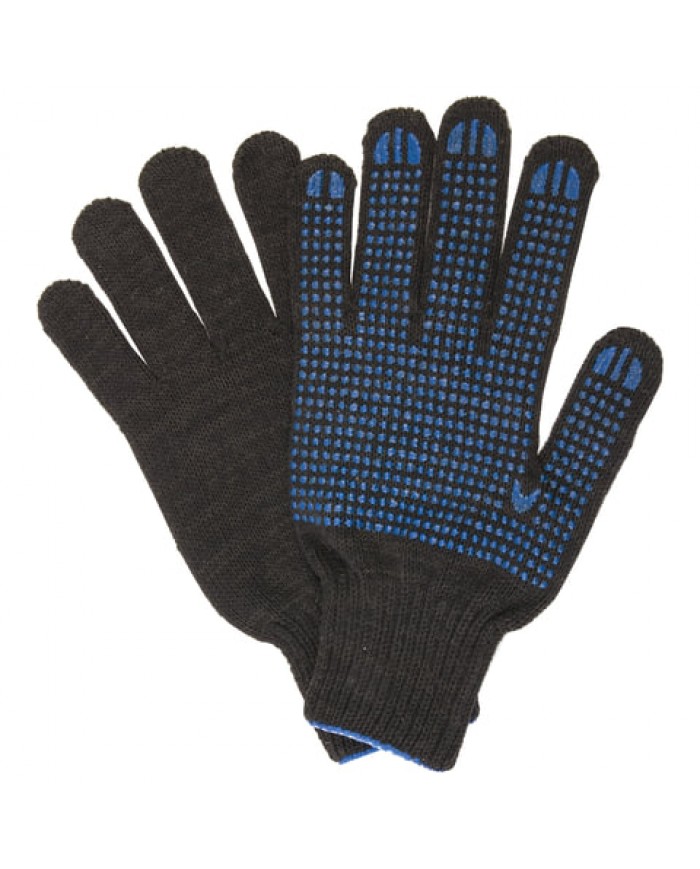 Изготовлены из хлопчатобумажной пряжи плотностью 133 текс с покрытием из поливинилхлорида с нанесением рисунка на внутреннюю сторону перчатки. Покрытие ПВХ помогает обеспечить плотный захват и предотвращает соскальзывание детали. Резинки на манжетах обеспечивают плотное прилегание перчатки к руке. Перчатки черного цвета имеют 10 класс вязки. Вес пары - 50-52 г. Поставляются в комплекте 5 штук в полиэтиленовой упаковке. СПРАВОЧНАЯ ИНФОРМАЦИЯ: На последнем фото можно ознакомится с визуализацией разницы между 7 и 10 классами вязки перчаток. 7 класс вязки – менее плотное плетение и более толстые нити. 10 класс вязки – более плотное плетение и стандартные нити, тоньше, чем используемые в 7 классе. 13 и 15 классы, к примеру, с еще более мелкой структурой вязки, с применением более тонких нитей, чем при вязке 7 и 10 класса. 13 и 15 классы вязки перчаток – еще более плотная вязка и более тонкие, но при этом более прочные нити, чем в 7 и 10 классах. Чем выше класс вязки, тем более тактильные перчатки. Х/б основу 13 и 15 классов применяют для более дорогих перчаток и используют как основу для перчаток с латексным, нитриловым и другими обливами, т.к. плотная вязка не дает обливу проникнуть внутрь перчатки, а позволяет равномерно распределиться по поверхности.