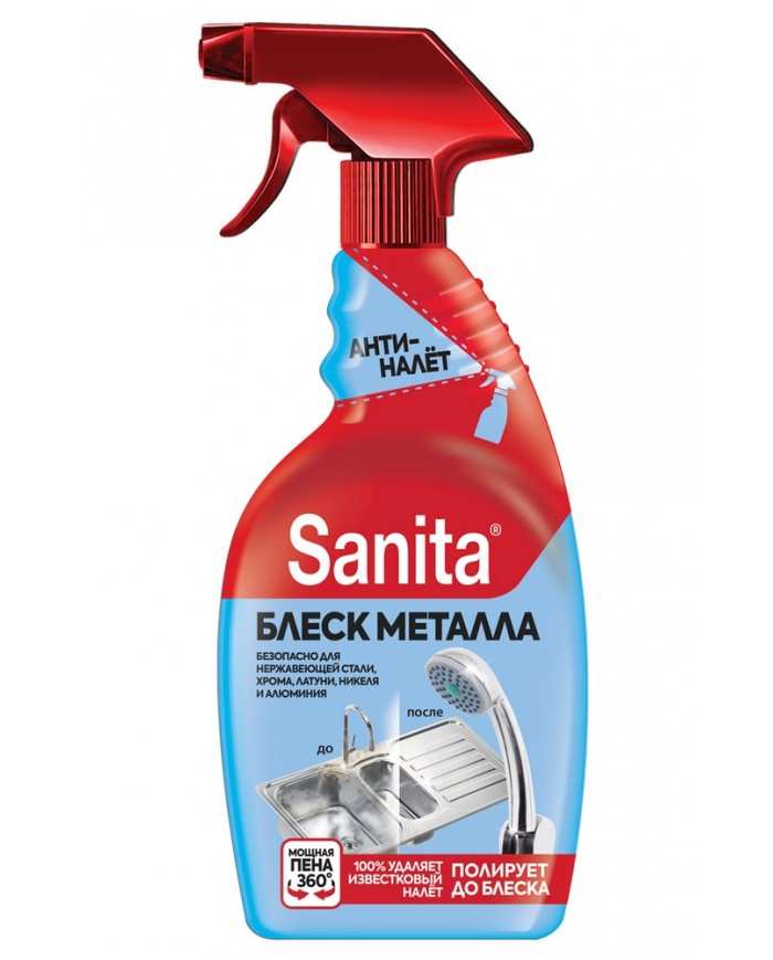 Средство чистящее Sanita "Блеск металла", спрей, для чистки металла, 500мл