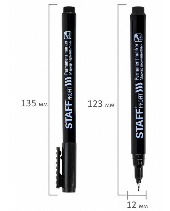 Маркер перманентный STAFF "Profit PM-105", ЧЕРНЫЙ, тонкий металлический наконечник 0,5 мм,