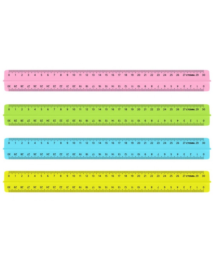 Линейка 30см Стамм, прозрачная флуоресцентная, с держателем