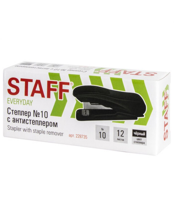 Степлер STAFF "EVERYDAY" с антистеплером в черном эргономичном пластиковом корпусе с металлическим механизмом cпособен скрепить до 12 листов. Подходящ..