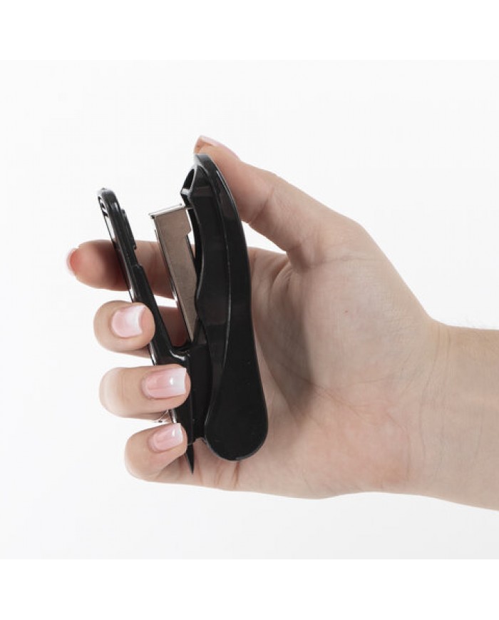 Корпус - пластик, механизм из металла. Эргономичная форма. Антискользящие верхняя накладка и основание. Вмещает 100 скоб №24/6, 26/6, 2 типа скреплени..