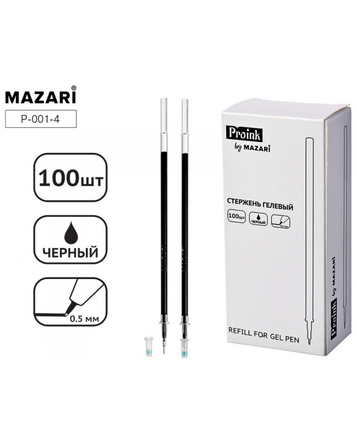 Стержень гелевый, ЧЕРНЫЙ, игольчатый пиш.узел 0.5мм, длина 130 мм