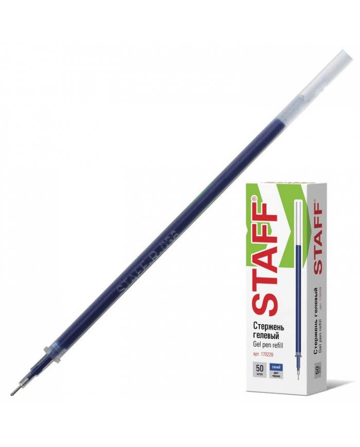 Стержень гелевый STAFF "Basic", 135 мм, СИНИЙ, игольчатый узел 0,5 мм, линия письма 0,35 мм