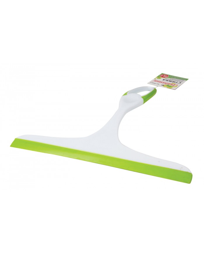 Лезвие плотно прилегает к поверхности и гарантирует отличный результат. Основа изготовлена из пластика, стяжка - из резины. Сочетает два цвета: белый и зеленый. Длина рабочей части - 24,5 см.