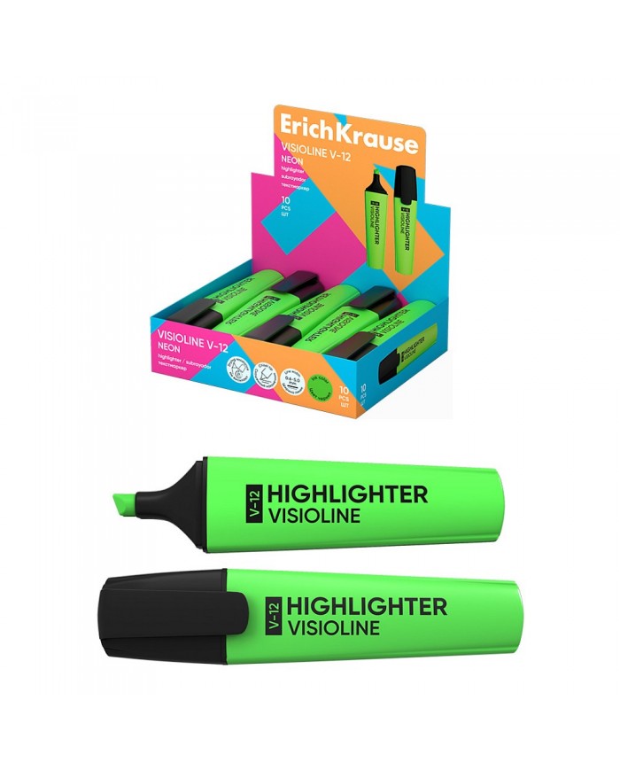 Текстмаркер ErichKrause Visioline V-12 Neon, цвет чернил зеленый , МАЛАЙЗИЯ