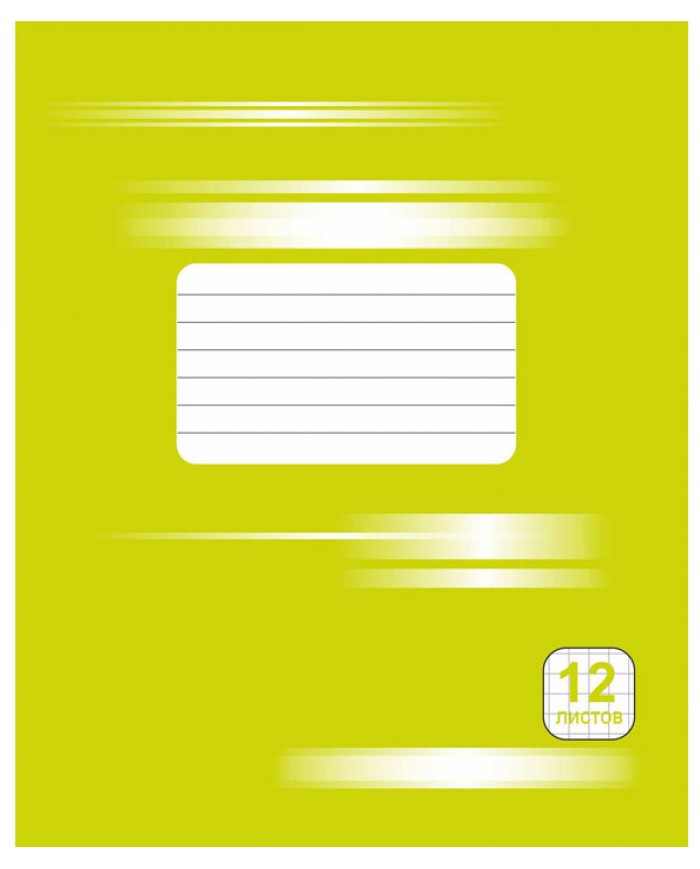 Тетрадь 12л., клетка, картонная обложка, зеленая