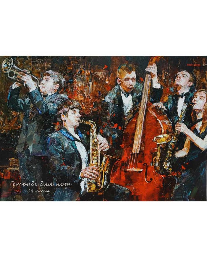 Тетрадь для нот 24л. А4 альбомная ДЖАЗ-БЭНД (скрепка, цветная мелов.обл.) - 5 %