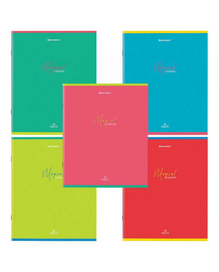 Тетрадь А5 48 л. BRAUBERG скоба, линия, обложка картон, "Magical Colors" (микс в спайке),