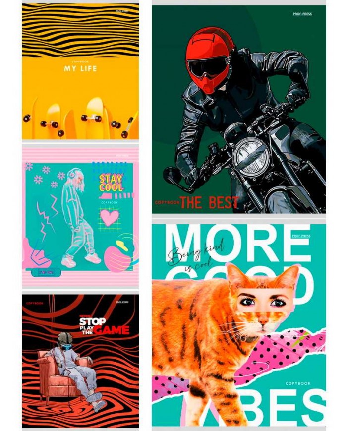 Тетрадь 96 л А5 клетка МИКС-113 (цвет.мелов.обложка ) 5 дизайнов