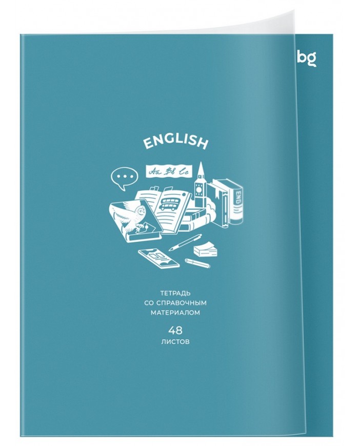 Предметная тетрадь BG «Английский язык» со справочной информацией на форзаце и обороте понадобится ученикам 7 класса и старше. Она входит в серию «», в которой представлено 12 тетрадей. Формат изделия — А5. Внутренний блок на скрепке состоит из 48 листов в клетка с полями. В тетради используется офсетная бумага плотностью 60 г/кв.м. Белизна блока — 100 %. Обложка выполнена из мелованной бумаги с пластиковой обложкой и имеет прямые углы.