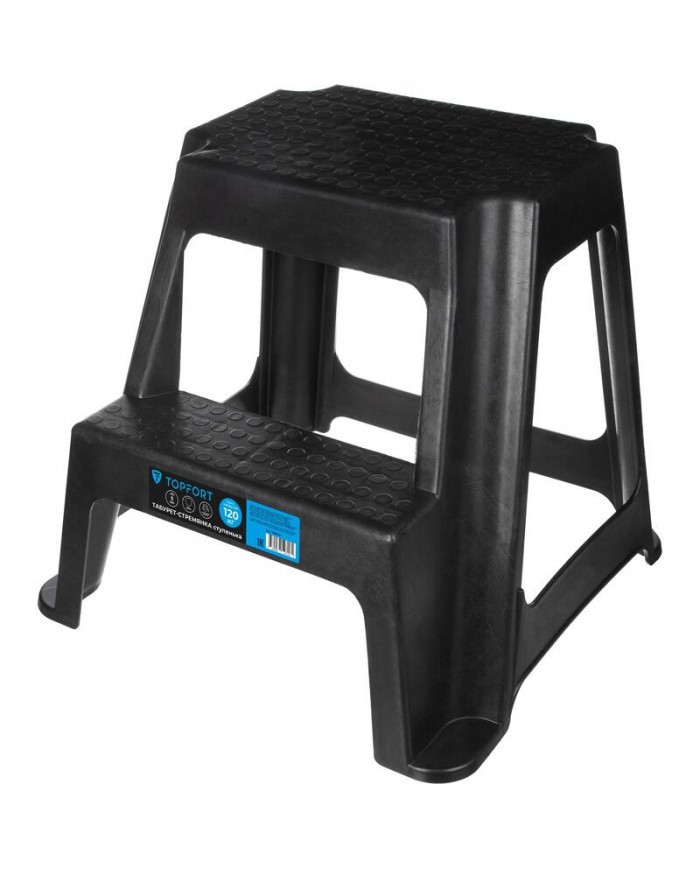 Черная стремянка-табурет Topfort позволяет добраться до труднодоступных мест и предметов, расположенных выше человеческого роста. Это незаменимый предмет на кухне, в гараже и домашней библиотеке, в магазинах, аптеках, в офисах, а также на складах или в саду. Изделие легкое и прочное, имеет одну ступеньку. Сборка не требуется. Изделие может использоваться и как стремянка, и как табурет. Несколько штук можно хранить, складывая друг в друга. Преимущества: - Прочная конструкция, усиленная ребрами жесткости, обеспечивает надежность во время использования. - Изготовлена из качественного пластика, не имеет острых углов, выдерживает вес до 120 кг. - Высота площадки: 43 см. - Компактные размеры позволяют удобно складировать и перевозить изделие. Внешний вид и/или характеристики товара могут быть изменены производителем в соответствии с производственным процессом.