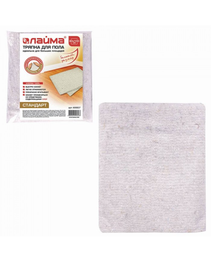 Тряпка для мытья пола 80х100 см, плотность 190 г/м2, ХПП, 100% хлопок, "Стандарт" LAIMA,