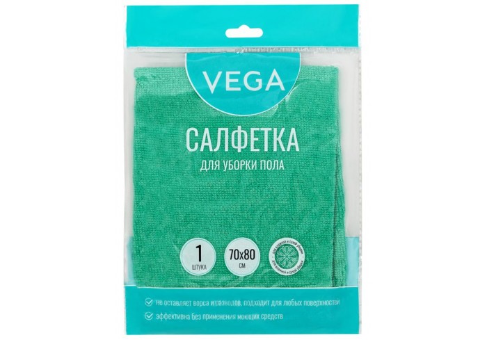 Тряпка для мытья пола Vega из микрофибры предназначена для проведения сухой и влажной уборки. Микрофибра - универсальная синтетическая ткань. По свои..