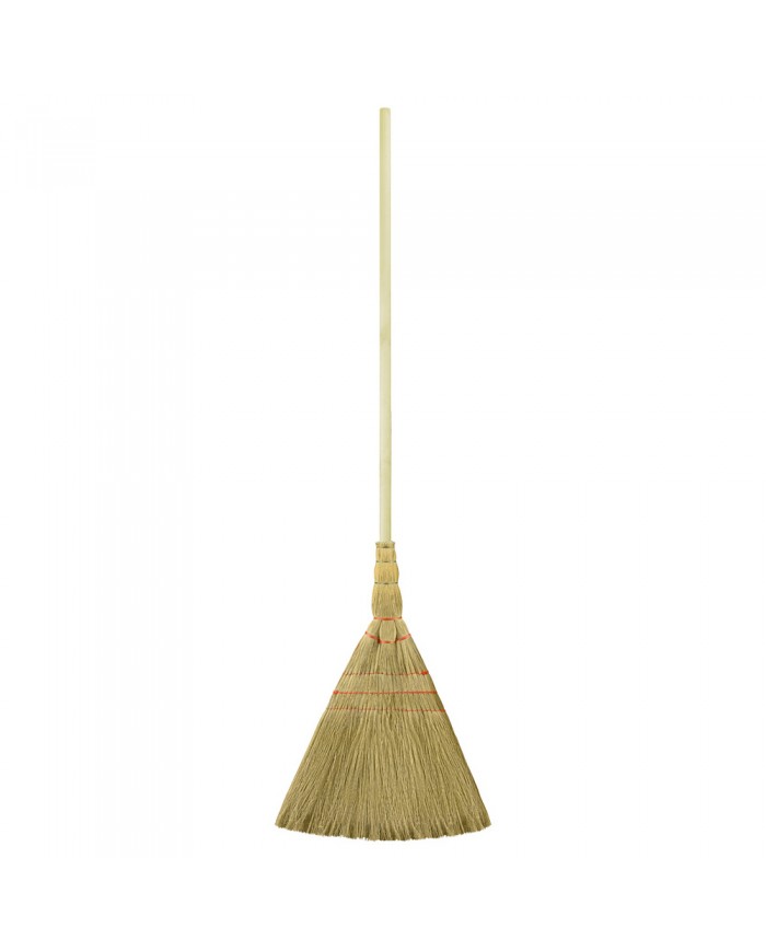 Веник-метла натуральная сорго Vega, трёхпрошивной, 3-х лучевой, с дерев. черенком, 124*35см