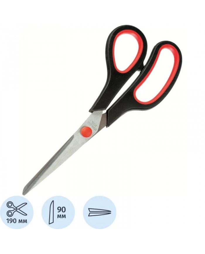 Ножницы 190 мм с пласт. прорезин. ручками, цвет крас/черн , Выбор Есть