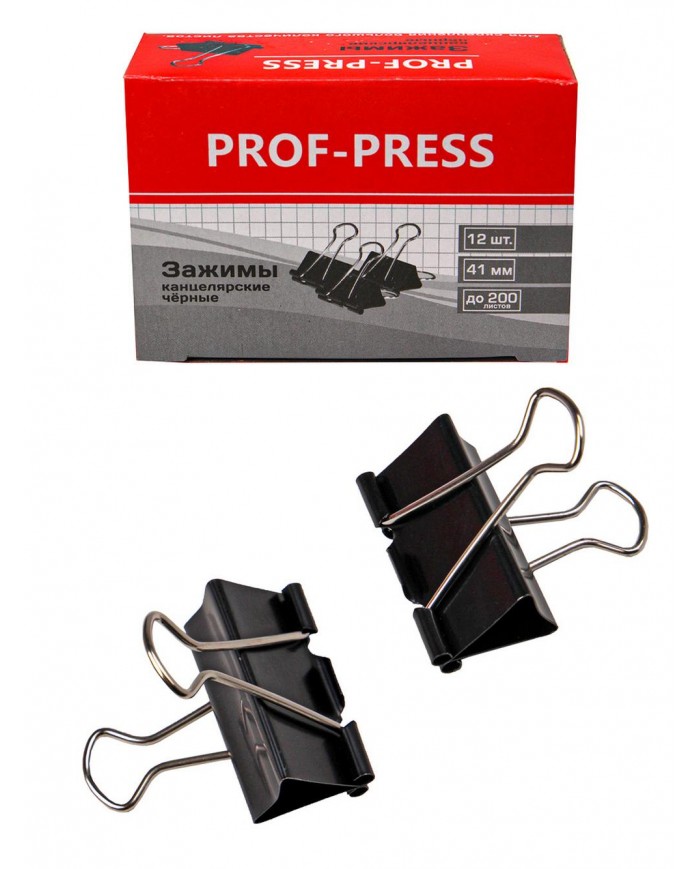 Зажим для бумаг ЧЕРНЫЙ 41мм, (набор 12шт) в карт. коробке